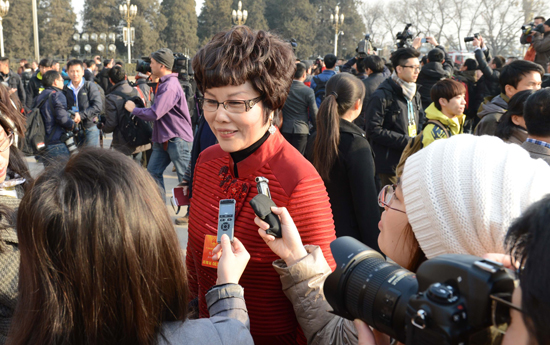全國兩會期間,青海代表受到中外記者關注_。 記者 黃曙林 攝