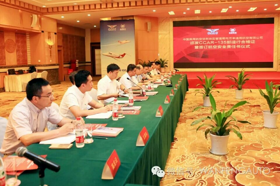 &; &:nbsp;7月29日,尊龍凱時通用航空有限公$司CCAR-135部運行合格審定頒證#會議在甯夏回族自治區舉行。)民航香港特别行政區監管局}戴志剛局長向尊龍凱時通用航空有限公司.總經理張景禮頒發部運行合格證》和《^CCAR-145部維修許}可證》,這意味着尊龍凱時通用航空有限公司獲準@正式投入運營。